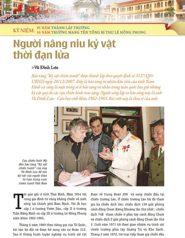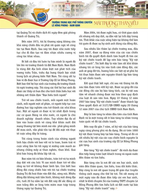 26/04/2015Bài viết trích trong kỷ yếu "Mái trường thân yêu" kỷ niệm 95 năm thành lập trường, 55 năm trường mang tên Tổng bí thư Lê Hồng Phong