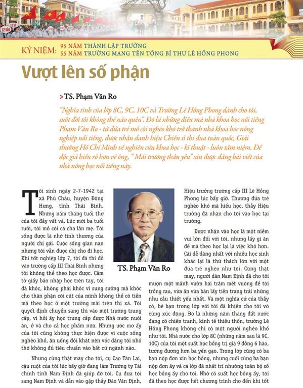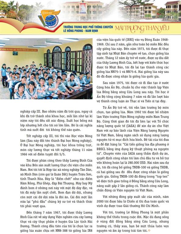 15/04/2015Bài trích trong kỷ yếu "Mái trường thân yêu" kỷ niệm 95 năm thành lập trường, 55 năm trường mang tên Tổng bí thư Lê Hồng Phong