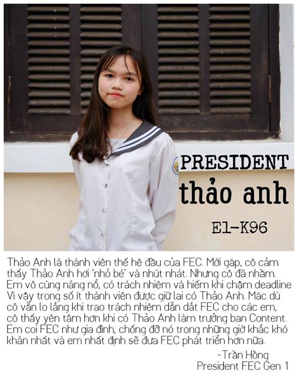 thông), Nguyễn Thảo An – 11 Lý (trưởng ban tài chính). Chúc FEC sẽ ngày càng