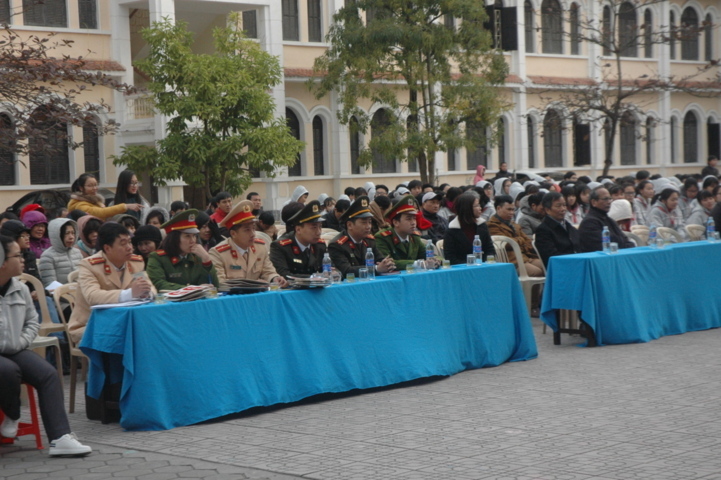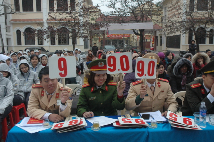 Mặc dù thời tiết rất lạnh nhưng không khí tại sân trường lại được hâm nóng ngay từ những phút đầu. Sau màn khởi động với ca khúc “Từ một ngã tư đường phố”, các học sinh hào hứng tham gia trò chơi gồm các câu hỏi trắc nghiệm xoay quanh các tình huống học sinh hay gặp phải khi tham gia giao thông đường bộ.