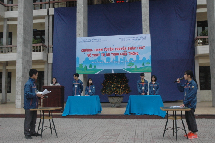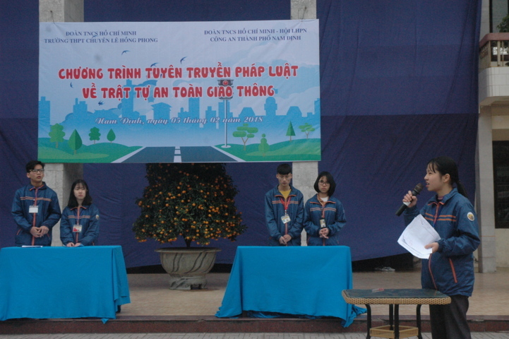 Sáng ngày 5/2/2018, Đoàn thanh niên trường THPT chuyên LHP đã phối hợp với Đoàn TN công an thành phố – Hội liên hiệp phụ nữ công an thành phố NĐ tổ chức chương trình tuyên truyền pháp luật về an toàn giao thông đường bộ. Chương trình có sự tham dự của toàn bộ hội đồng sư phạm nhà trường và hơn 1600 học sinh đến từ 48 lớp trong toàn trường!