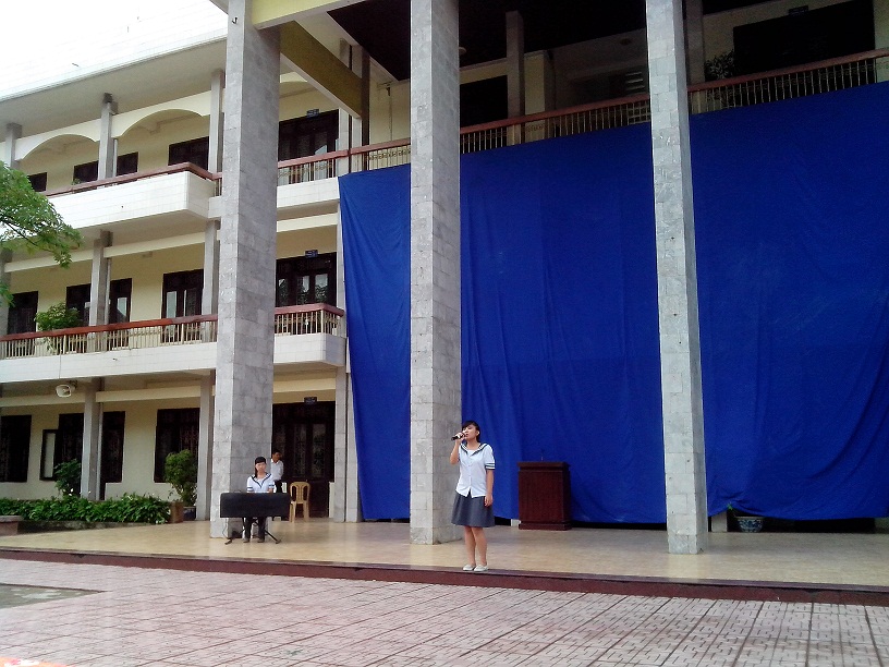 đầu chương trình văn nghệ, tốp ca đến từ lớp 10 chuyên Sinh đưa người nghe về