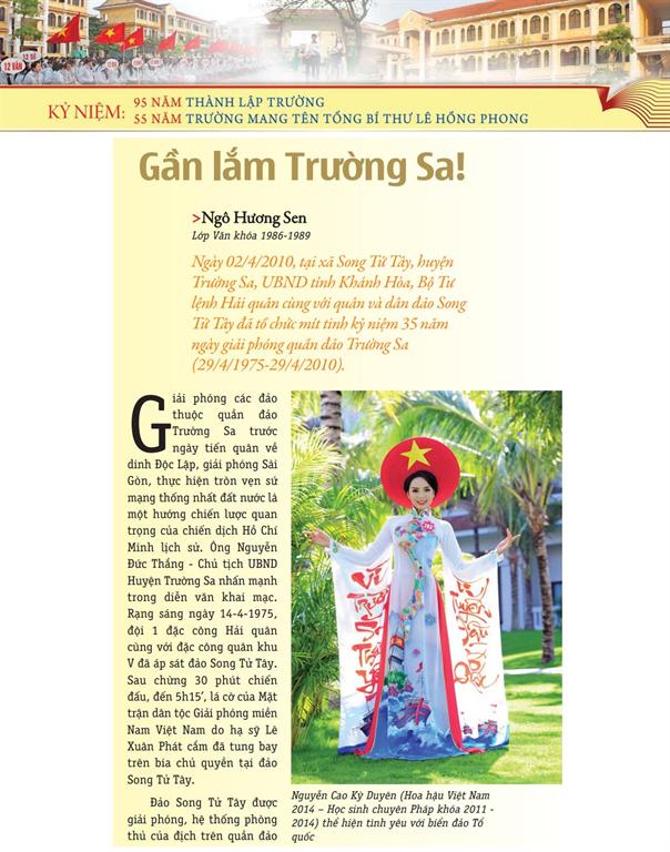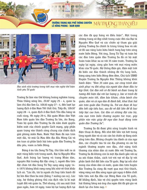 28/04/2015Bài viết trích trong kỷ yếu "Mái trường thân yêu" kỷ niệm 95 năm thành lập trường, 55 năm trường mang tên Tổng bí thư Lê Hồng Phong