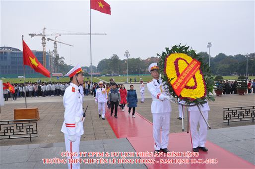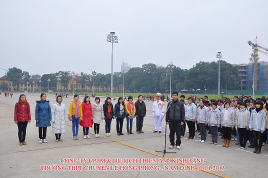 13/01/2013Ngày 10/1/2013, hội phụ huynh của nhà trường – với sự hỗ trợ của Đoàn trường, và sự phối hợp của công ty cổ phần du lịch Thiên Ân, đã tổ chức cho học sinh khối 10 thăm quan học tập tại Lăng chủ tịch Hồ Chí Minh và vui chơi ở Thiên đường Bảo Sơn – thành phố Hà Nội.