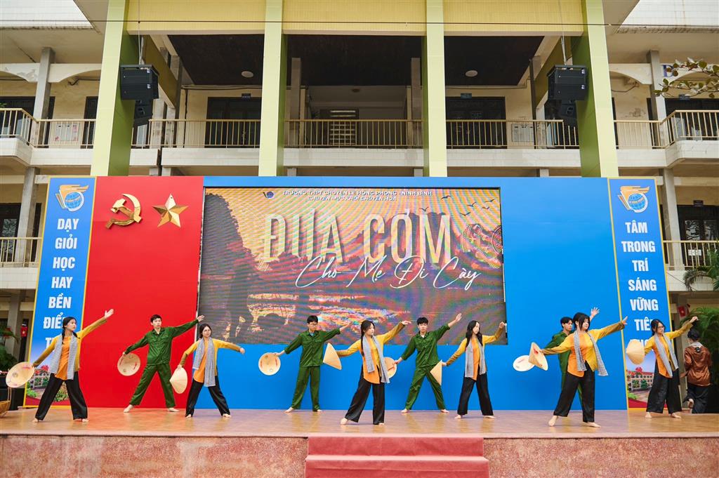 Với chuyên mục nghệ thuật mang tên “Hoa trên máu đất”, học sinh khối chuyên Hóa đã khéo léo tái hiện những năm tháng chiến đấu gian khổ mà hào hùng của dân tộc bằng ngôn ngữ nghệ thuật giàu cảm xúc. Mỗi tiết mục là một lát cắt lịch sử, một nén tâm nhang tri ân gửi tới những người lính đã hy sinh vì độc lập, tự do của Tổ quốc. Chương trình không chỉ cho thấy tài năng biểu diễn, sự sáng tạo, trí tuệ của học sinh Lê Hồng Phong mà còn lan tỏa mạnh mẽ tinh thần yêu nước, niềm tự hào dân tộc và ý thức trách nhiệm của thế hệ trẻ hôm nay.