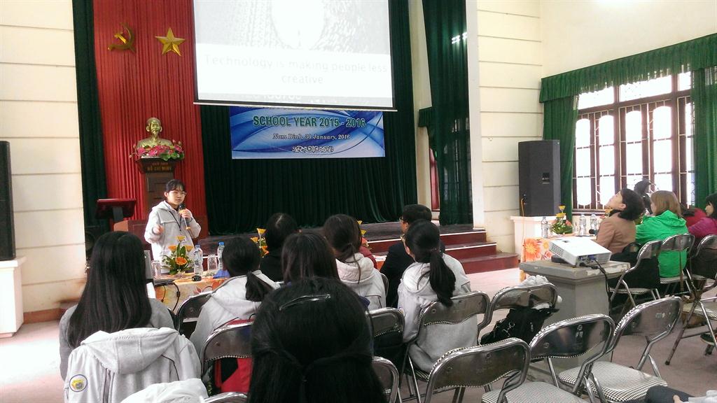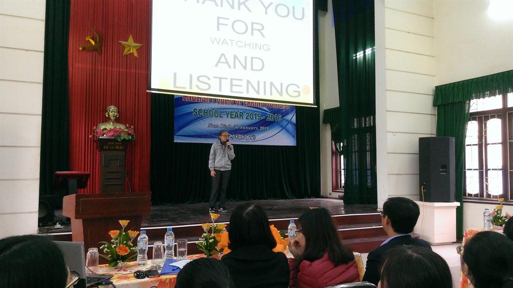 01/02/2016Thực hiện công văn số 1230/KH-SGDĐT về việc tổ chức hội thi Hùng biện tiếng Anh lần thứ IV, được sự cho phép của Ban Giám Hiệu trường THPT chuyên Lê Hồng Phong, chiều ngày 30/01/2016, nhóm tiếng Anh đã tổ chức thành công vòng chung kết, chọn được những gương mặt xuất sắc nhất tham dự hội thi cấp tỉnh.