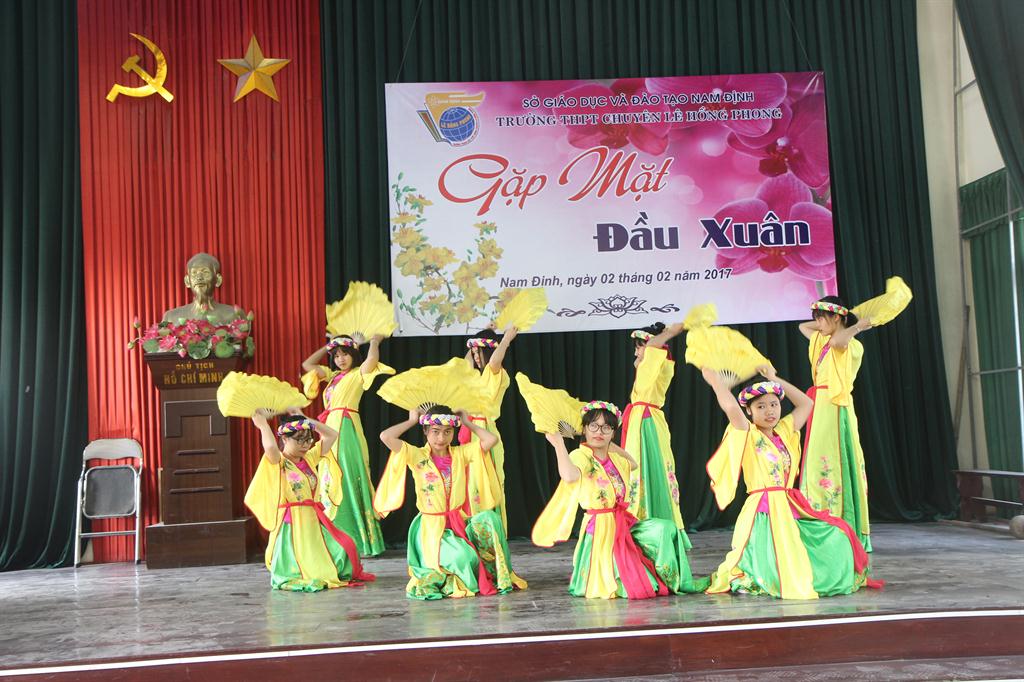 04/02/2017Sáng ngày 1 tháng 2 năm 2017 ( Ngày mùng 6 Tết Đinh Dậu) Ban giám hiệu, các thầy cô giáo, CNV, Hội cựu giáo chức và các em học sinh trường THPT Chuyên Lê Hồng Phong – Nam Định đã tổ chức buổi gặp mặt Chào Xuân 2017 trong niềm vui hân hoan, rạng ngời, hạnh phúc.