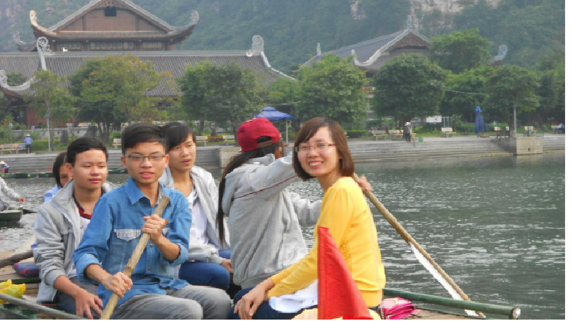 12h, cả lớp nghỉ ngơi ăn trưa và quay về khu du lịch sinh thái Tràng An. 14h30 đoàn đã có mặt tại Bến thuyền Tràng An.