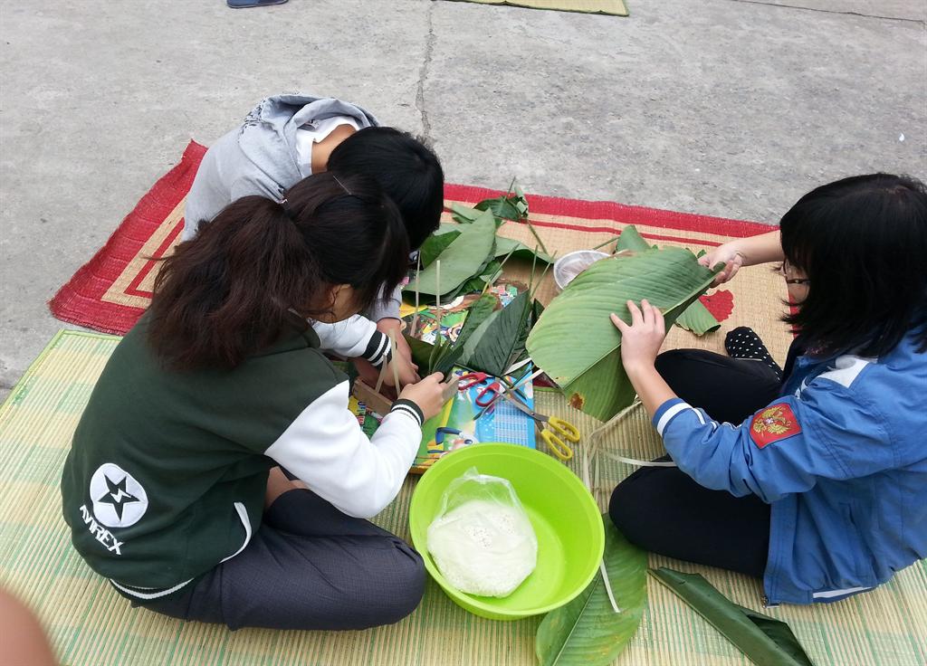 Dưới đây là một số hình ảnh về cuộc thi gói bánh chưng của học sinh kí túc xá.
