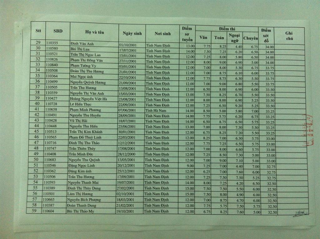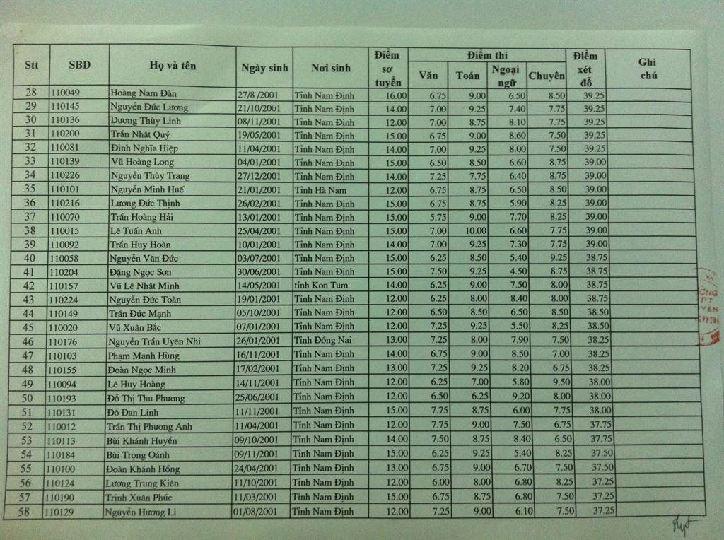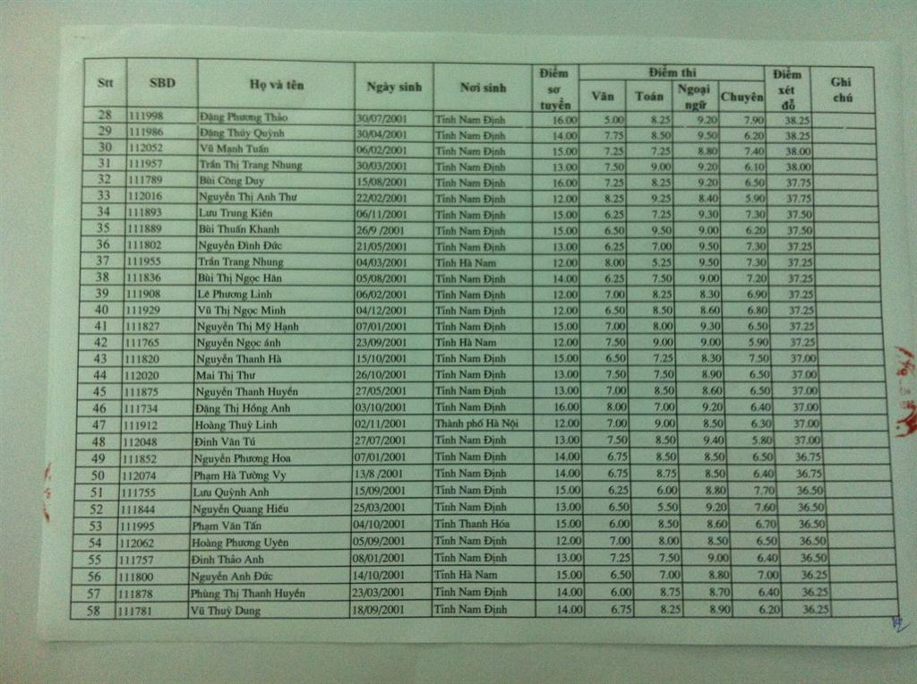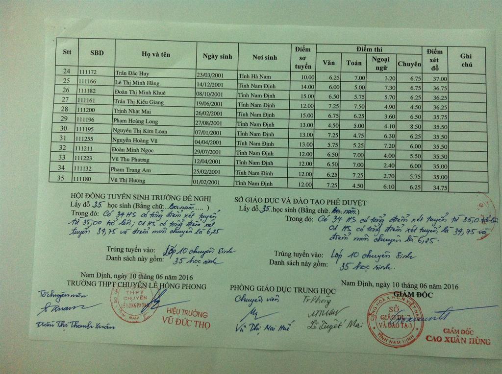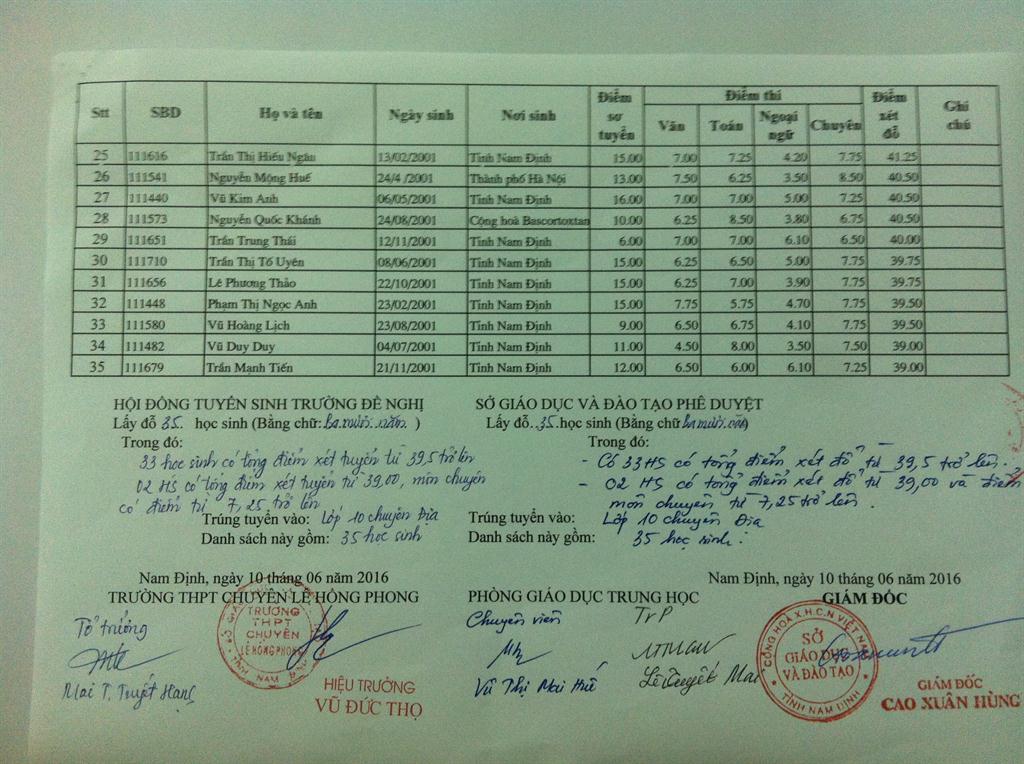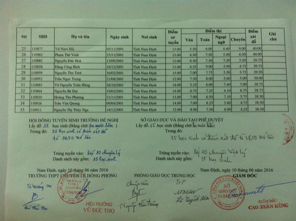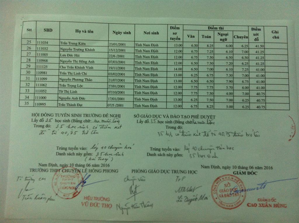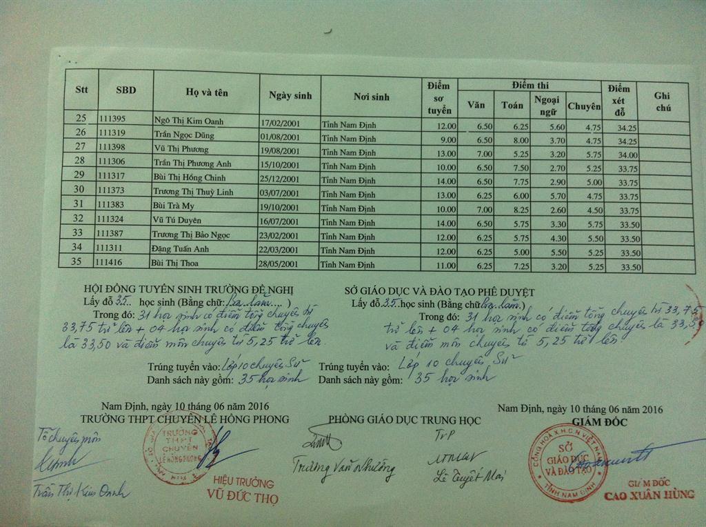 Danh sách thí sinh trúng tuyển vào trường THPT chuyên Lê Hồng Phong năm học 2016-2017