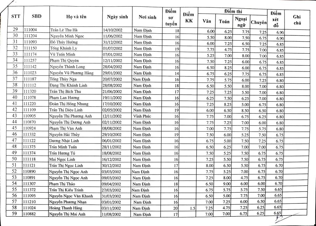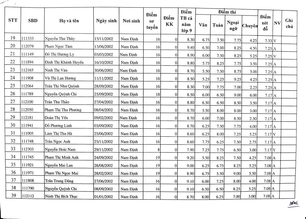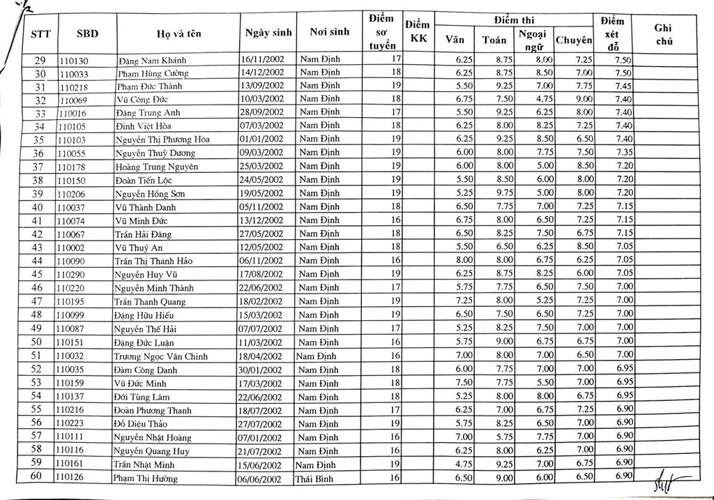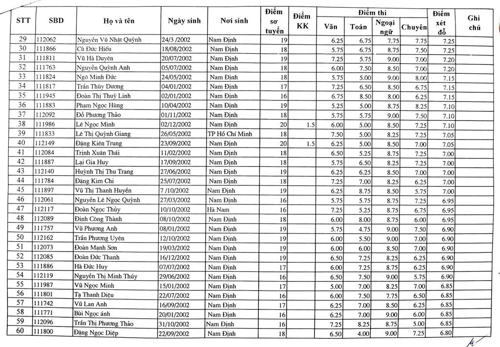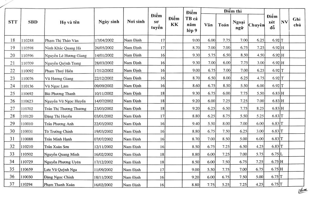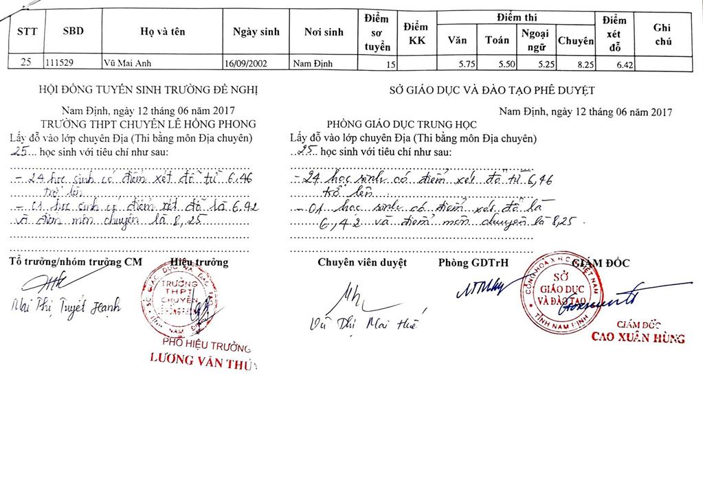 DANH SÁCH THÍ SINH TRÚNG TUYỂN VÀO TRƯỜNG THPT CHUYÊN LÊ HỒNG PHONG NĂM HỌC 2017-2018