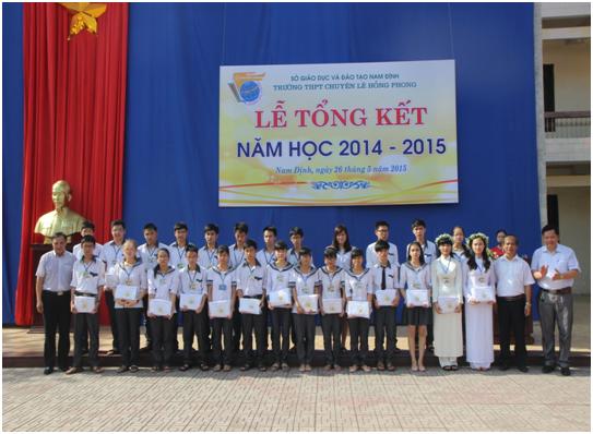 05/06/2015Thấm thoắt một năm học nữa lại trôi qua. Trong không khí hân hoan, lập thành tích hướng về Đại hội Đảng Toàn quốc lần thứ XII và chào mừng thành công Lễ kỉ niệm 95 năm thành lập trường và 55 năm trường mang tên Tổng Bí thư Lê Hồng Phong; ngày 26.5.2015, thầy và trò trường THPT chuyên Lê Hồng Phong long trọng tổ chức Lễ tổng kết năm học 2014 – 2015. Đây cũng là dịp nhà trường chia sẻ niềm vui với những thành quả đã đạt được; đồng thời rút kinh nghiệm về những điểm còn tồn tại, từ đó điều chỉnh các hoạt động của nhà trường trong năm học tiếp theo.
