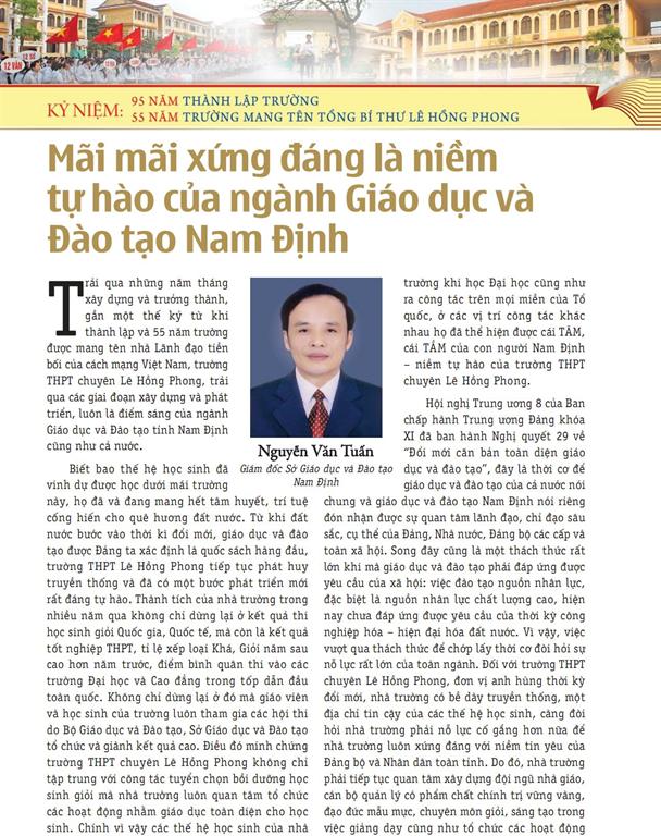 Mãi mãi xứng đáng là niềm tự hào của ngành Giáo dục và Đào tạo Nam Định