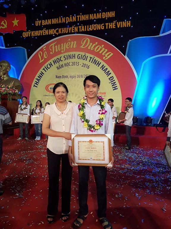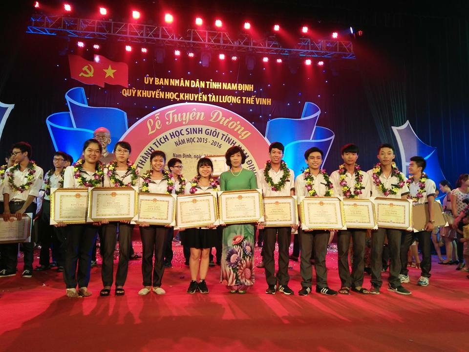 31/08/2016Trong không khí phấn khởi chào mừng 71 năm Cách mạng tháng Tám thành công và Quốc khánh 2-9, thầy và trò trường THPT Chuyên Lê Hồng Phong- Nam Định đã có mặt trong Lễ tuyên dương thành tích học sinh giỏi Tỉnh năm học 2015 - 2016 tại Nhà hát Tỉnh Nam Định. Các học sinh giỏi đạt giải trong các kì thi Quốc gia, khu vực và Quốc tế , trong các kì thi học sinh giỏi Tỉnh, cuộc khi Khoa học sáng tạo, cuộc thi Đường lên đỉnh Olympia 16, điểm cao nhất trong kì thi THQG... đã được xướng tên một lần nữa và vinh dự đón nhận những phần thưởng đáng tự hào!
