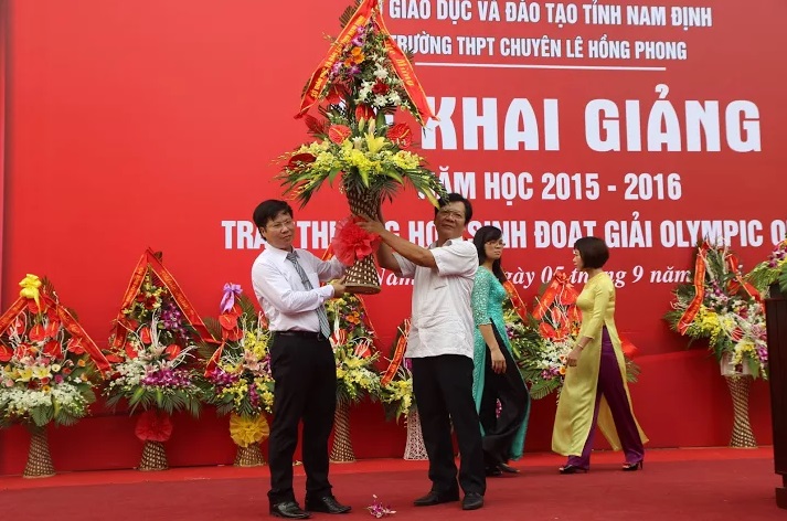 12/09/2015Trong không khí tưng bừng phấn khởi chào mừng thành công 70 năm Cách mạng tháng Tám và Quốc khánh 2 - 9, hòa chung với niềm hân hoan của hàng triệu giáo viên, học sinh trên cả nước, sáng 5.9, trường THPT chuyên Lê Hồng Phong Nam Định long trọng tổ chức lễ khai giảng năm học mới 2015 – 2016.