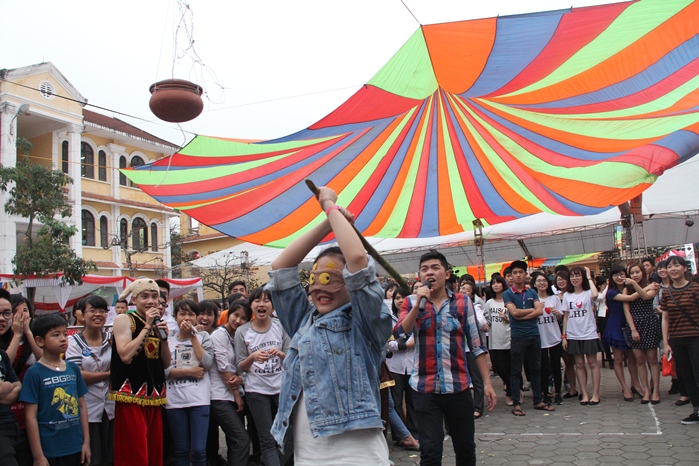 trên sân trường như: nhảy sạp, đập niêu đất, bắn bóng trúng quà,…