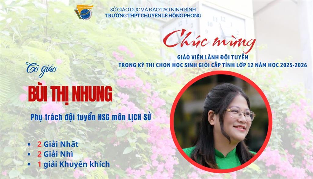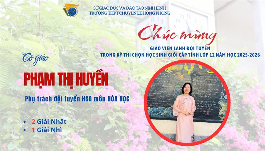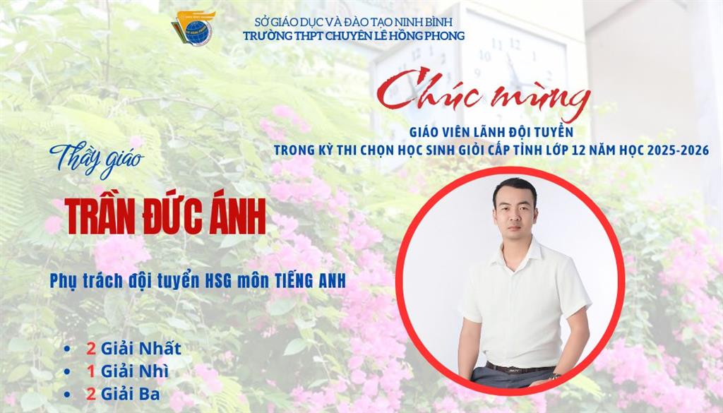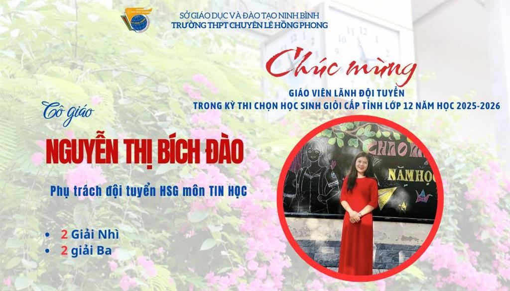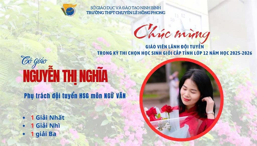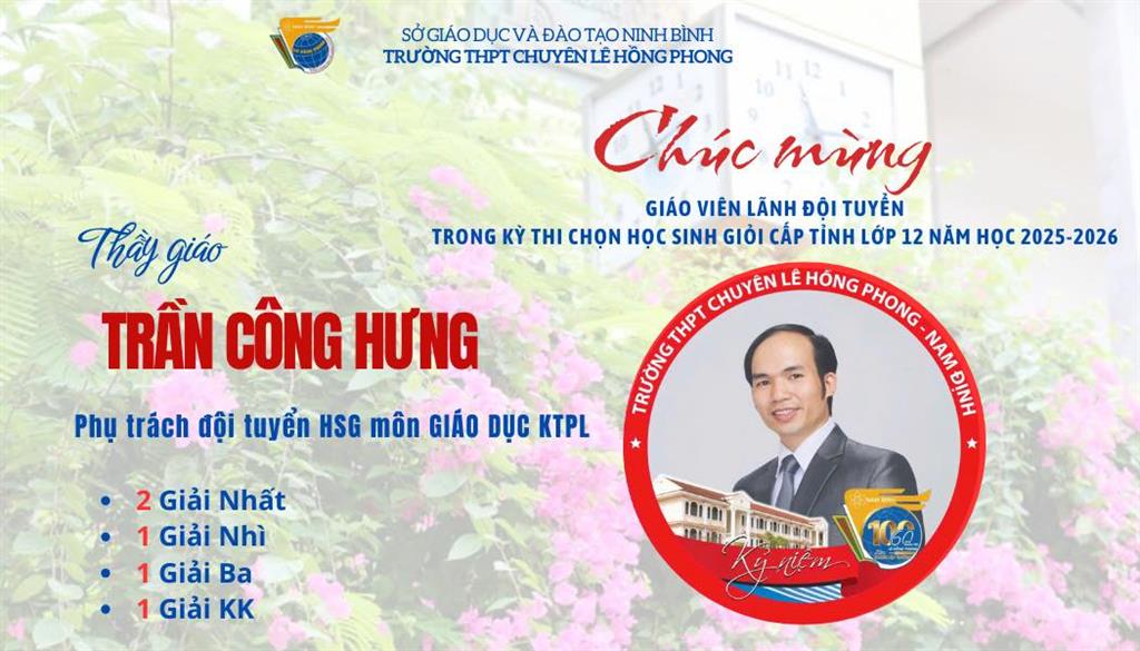 Kỳ thi chọn học sinh giỏi tỉnh lớp 12 năm học 2025–2026 khép lại, nhưng hành trình cống hiến của các giáo viên vẫn còn mãi. Thầy cô là những người âm thầm đặt nền móng, là khởi nguồn của những mùa vàng tri thức, góp phần làm nên thương hiệu học sinh giỏi Lê Hồng Phong – ngôi trường luôn tự hào bởi chiều sâu tri thức và bản sắc giáo dục bền vững. Mùa thi nối tiếp mùa thi, hành trình bồi dưỡng học sinh giỏi sẽ không dừng lại, thầy cô lại tiếp tục chuẩn bị cho một mùa mới. Chúc các thầy cô luôn tràn đầy nhiệt huyết, trách nhiệm và khát vọng nâng tầm trí tuệ học trò đất học đất văn.