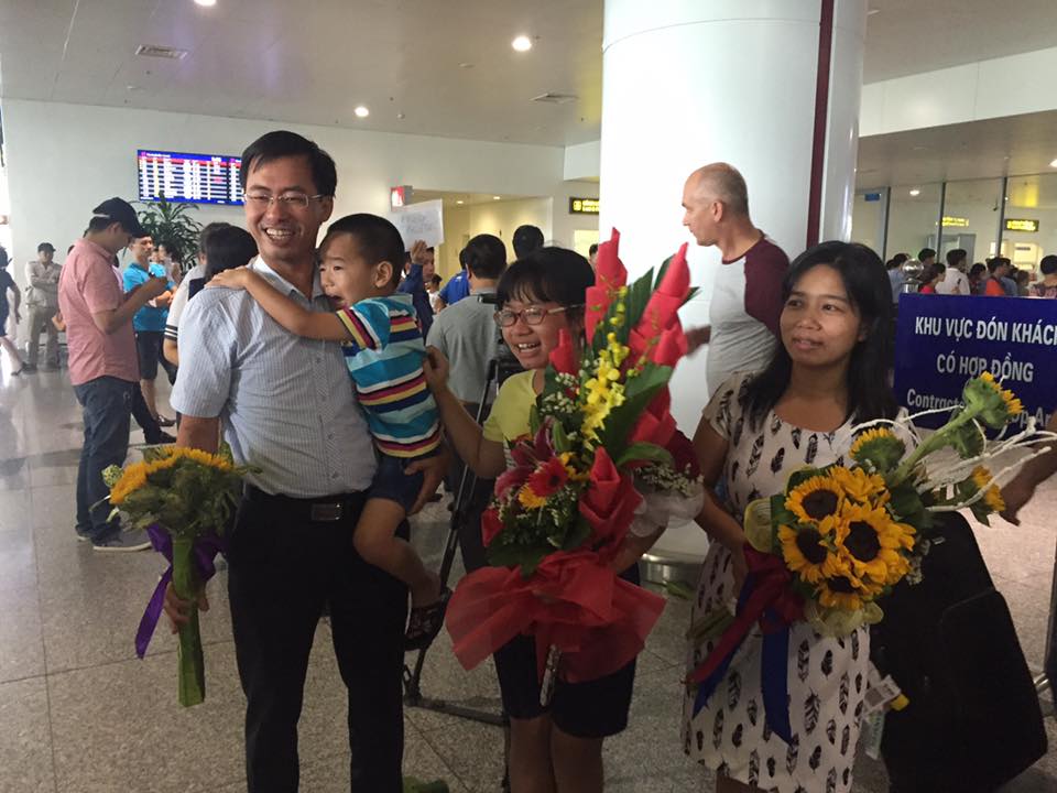 Thầy giáo Vũ Đức Thọ - hiệu trưởng nhà trường cùng các thầy cô đón Trung tại sân bay