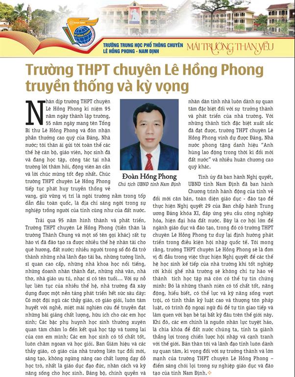 Trường THPT chuyên Lê Hồng Phong truyền thống và kỳ vọng